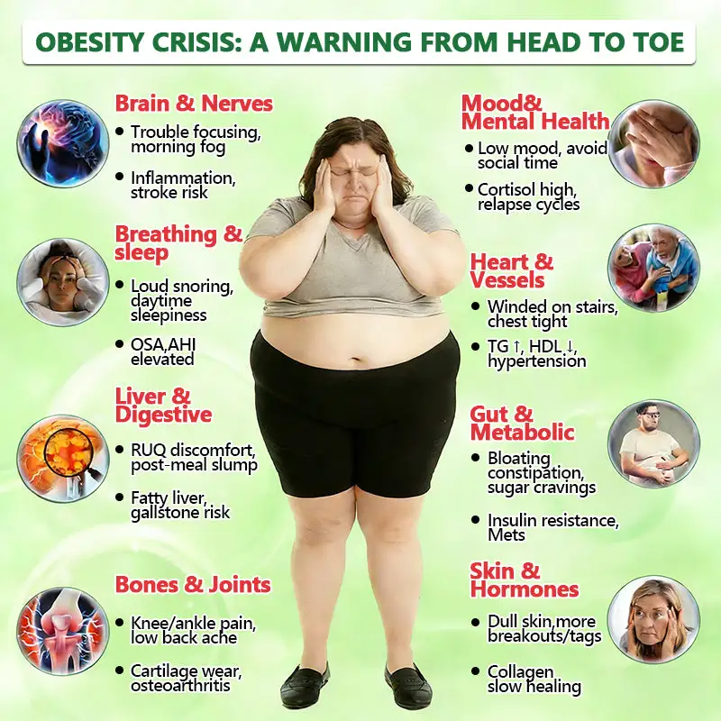 Type 2 Diabetes: Excess weight triggers insulin resistance, dramatically increasing the risk of Type 2 Diabetes and its severe complications.