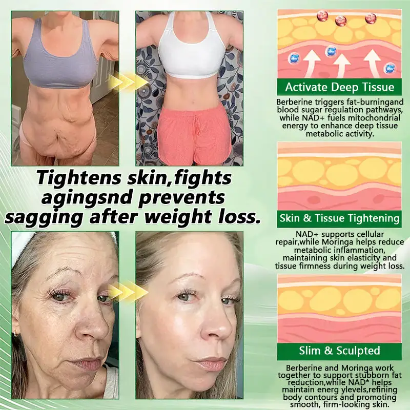 NAD+ & Collagen Peptides: Boost cellular energy and skin firmness, helping you look toned and tight as your body transforms.