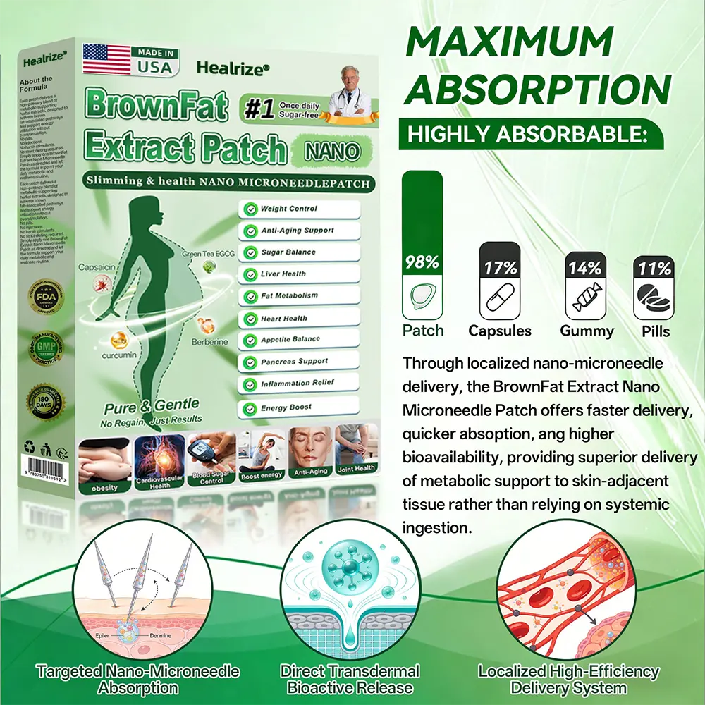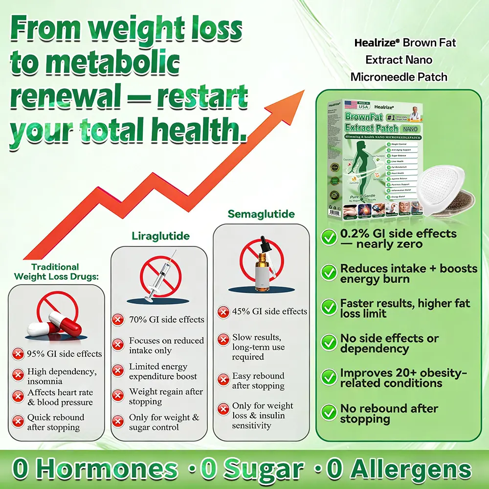 Stop fighting your metabolism and start working with it. The Healrizeยฎ Brown Fat Extract Nano Microneedle Patch is a next-generation weight management solution that targets Brown Adipose Tissue (BAT). Unlike white fat, which stores energy, brown fat burns it.