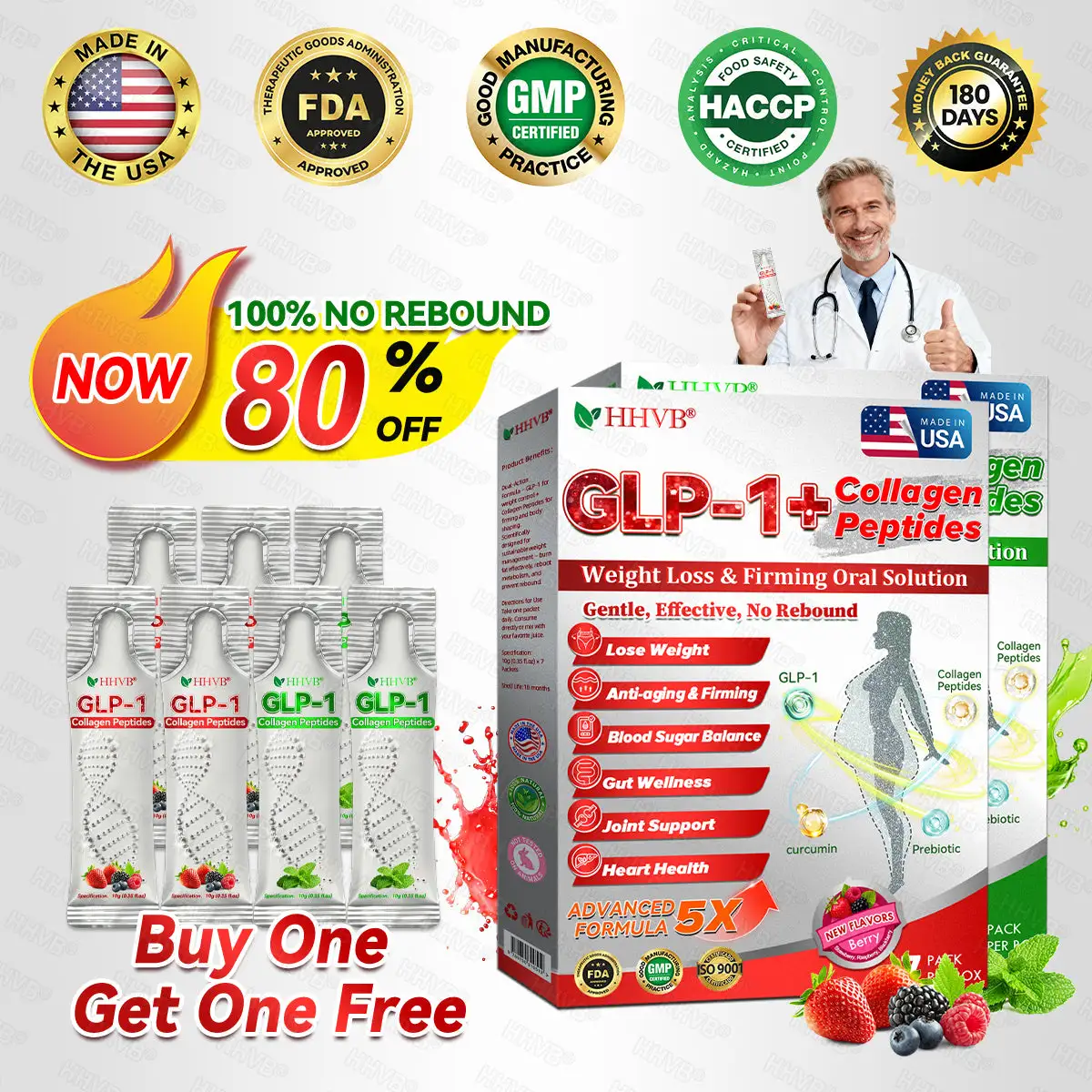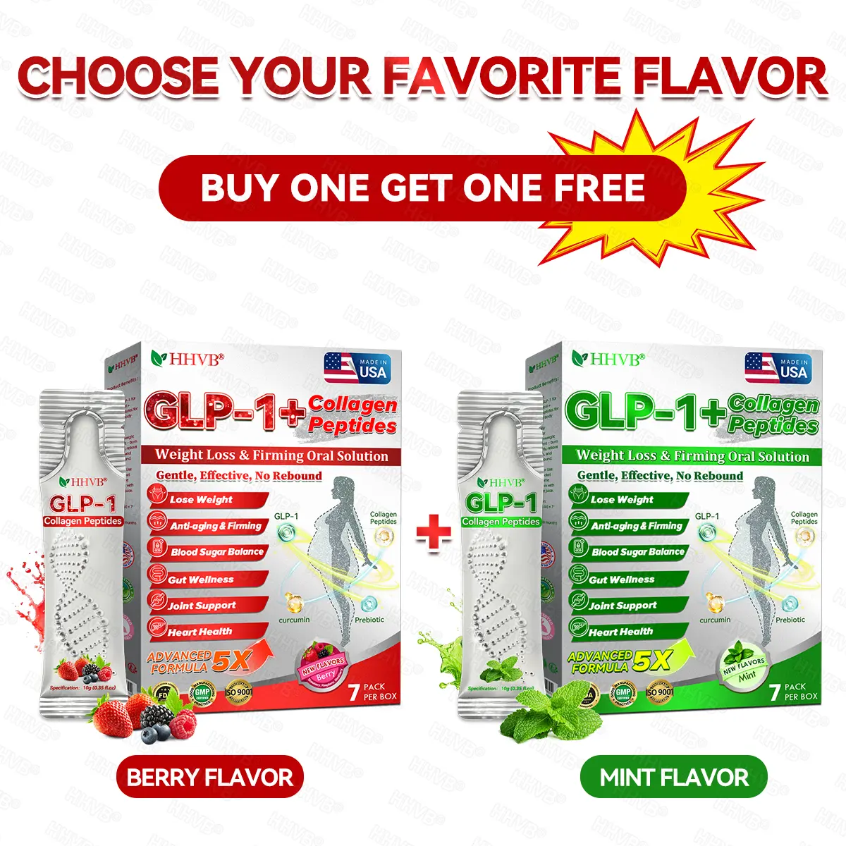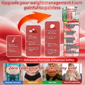 HHVBยฎGLP-1+Collagen Peptidesย Weight Loss&Firming Oral Solution Developed by an international team of metabolic and endocrinology experts, the GLP-1 + Collagen Peptides Oral Solution represents a groundbreaking synergy in weight management and skin regeneration.GLP-1 technology precisely targets the bodyโs metabolic center to regulate appetite, accelerate fat breakdown, and restore energy balance. Meanwhile, Collagen Peptides work deep within the dermis to repair structural loss caused by fat reduction, rebuilding the skinโs support network and visibly improving firmness and elasticity.Clinical studies demonstrate that this dual-action formula delivers measurable resultsโreducing body fat while enhancing skin tightness within a short period of use. It offers a scientifically validated solution for sustainable health, firmness, and long-lasting vitality.