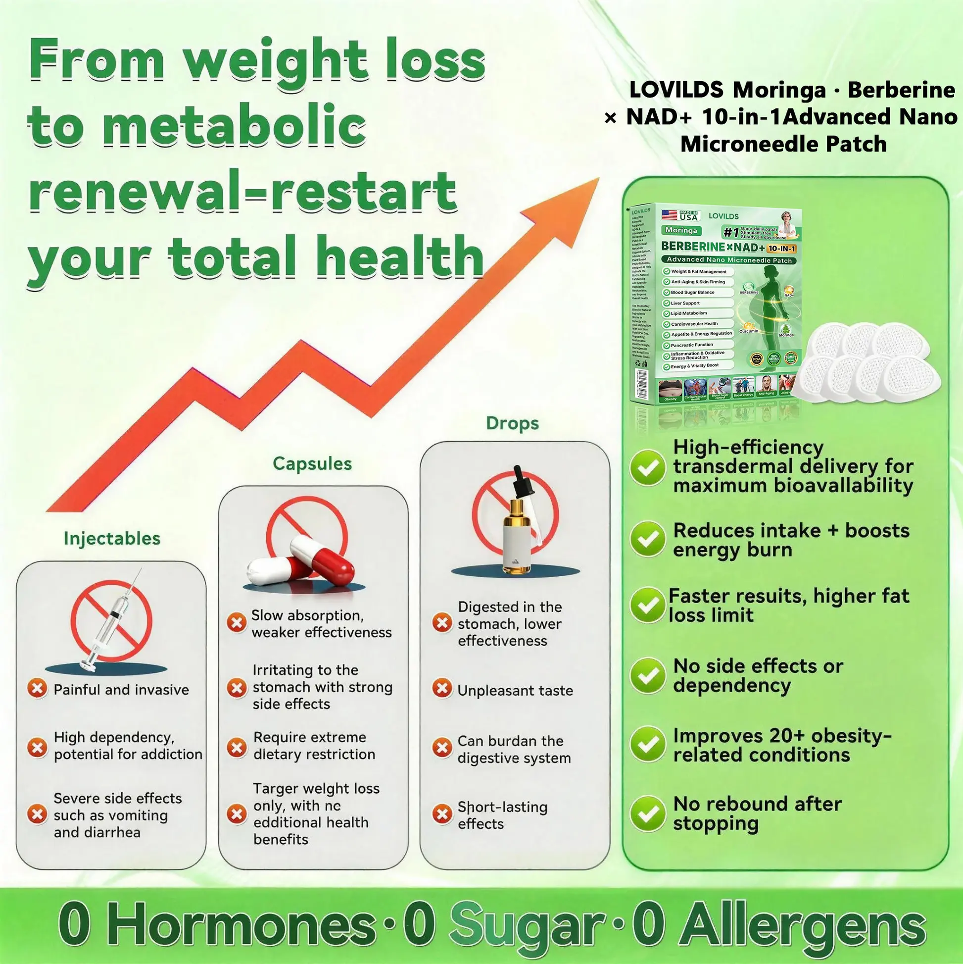 LOVILDSยฎ Moringaยท Berberine x NAD+ 10-in-1 Advanced Nano Microneedle Patch: 98% Absorption Rate, Transforming Weight, Liver, Gut & Skin Health