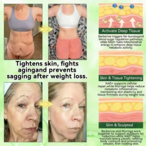 Benefits: Supports cellular energy levels and physical endurance, promotes cognitive function and mental focus, helps slow age-related cellular decline, and contributes to improved skin firmness and elasticity. Particularly beneficial for addressing skin laxity in areas such as the abdomen and arms following weight loss.