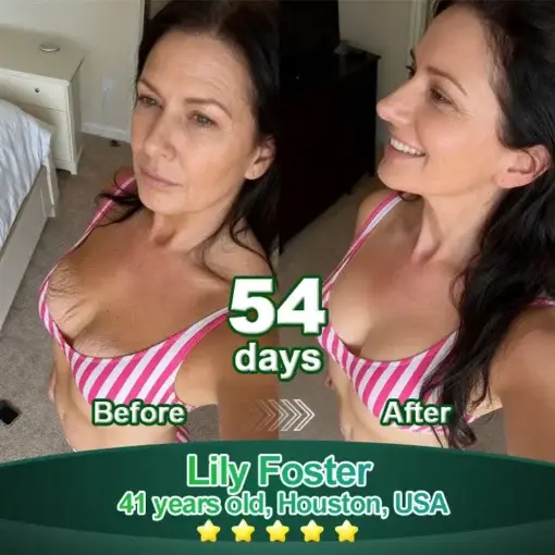 I drink it twice a day — just mix it into water — and every time, I feel this gentle warmth all over my body. I’m not kidding, I notice changes almost every other day! I started on August 25th, kept doing it twice a day, plus a bit of sunscreen — that’s literally all. It’s so simple and works so fast! My dark spots, rosacea, wrinkles… even my hair looks so much better now. This is honestly a full-body booster, and I don’t think I can go a day without it anymore. I feel absolutely amazing, and I 100% recommend it! –Mia Hughes, Chicago