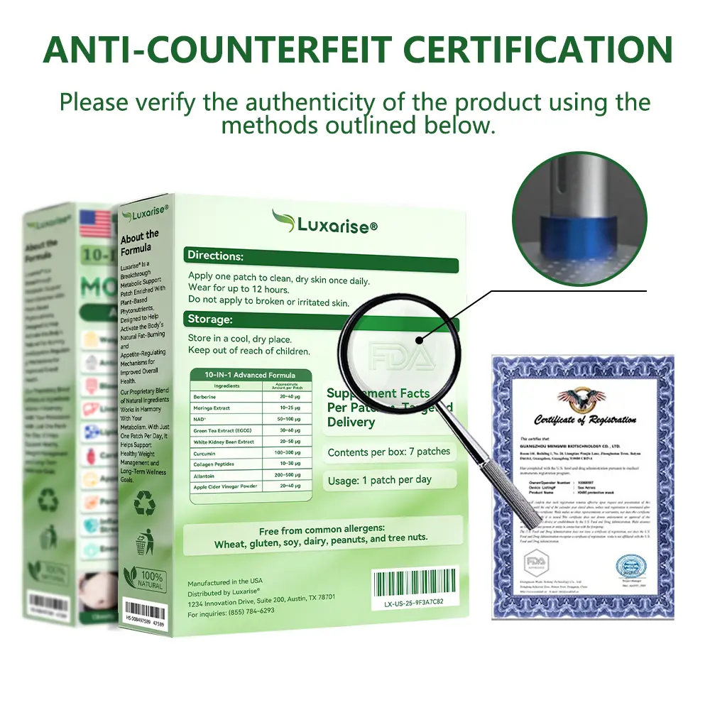 Using advanced transdermal delivery technology, the active compounds are released slowly and steadily through the skin barrier, entering the microcirculation and targeting specific areas for precise, sustained, and gentle support. Safe, reliable, and cruelty-free, the patch is suitable for all skin types and body types. It has been verified through relevant testing, with noticeable improvements felt in as little as 7 days.