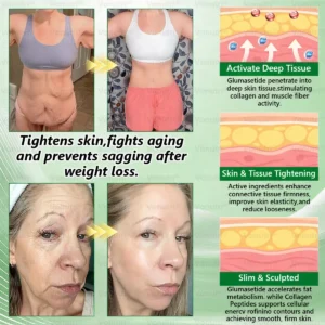 Rapid weight loss often leads to loose, sagging skin and a noticeable decline in elasticity. ๐๐ค๐ฃ๐ช๐ฉ๐ง๐ยฎ addresses this issue by adding Collagen Peptides and collagen-boosting factors to help restore firmness and thickness. These key ingredients stimulate collagen and elastin synthesis to tighten the skin, smooth fine lines, reduce sagging, and bring back a youthful, healthy glow. This ensures you not only lose weight successfullyโbut also keep a firm, youthful-looking shape without the โskinny but olderโ look. Slimming and rejuvenation happen at the same time. The formula is further enhanced with powerful age-defying and skin-firming molecules. NADโบ/NMN strengthen cellular repair and stimulate collagen production for anti-aging benefits; Omega-3 locks in moisture for long-lasting smoothness; Green Tea, Turmeric, and Moringa deliver potent antioxidant and anti-inflammatory protection; Magnesium helps repair and deeply hydrate the skin; while Silymarin detoxifies, brightens, and promotes clarity. This advanced synergistic blend not only offers anti-wrinkle and anti-aging benefits, but also supports the recovery of skin laxity after weight lossโhelping restore firmness, elasticity, and resilience. Clinically demonstrated: In as little as 4 weeks, over 82% of users experienced improved hydration, smoother fine lines, firmer skin, and a visibly lifted appearanceโregaining a youthful, sculpted look even after significant weight loss.