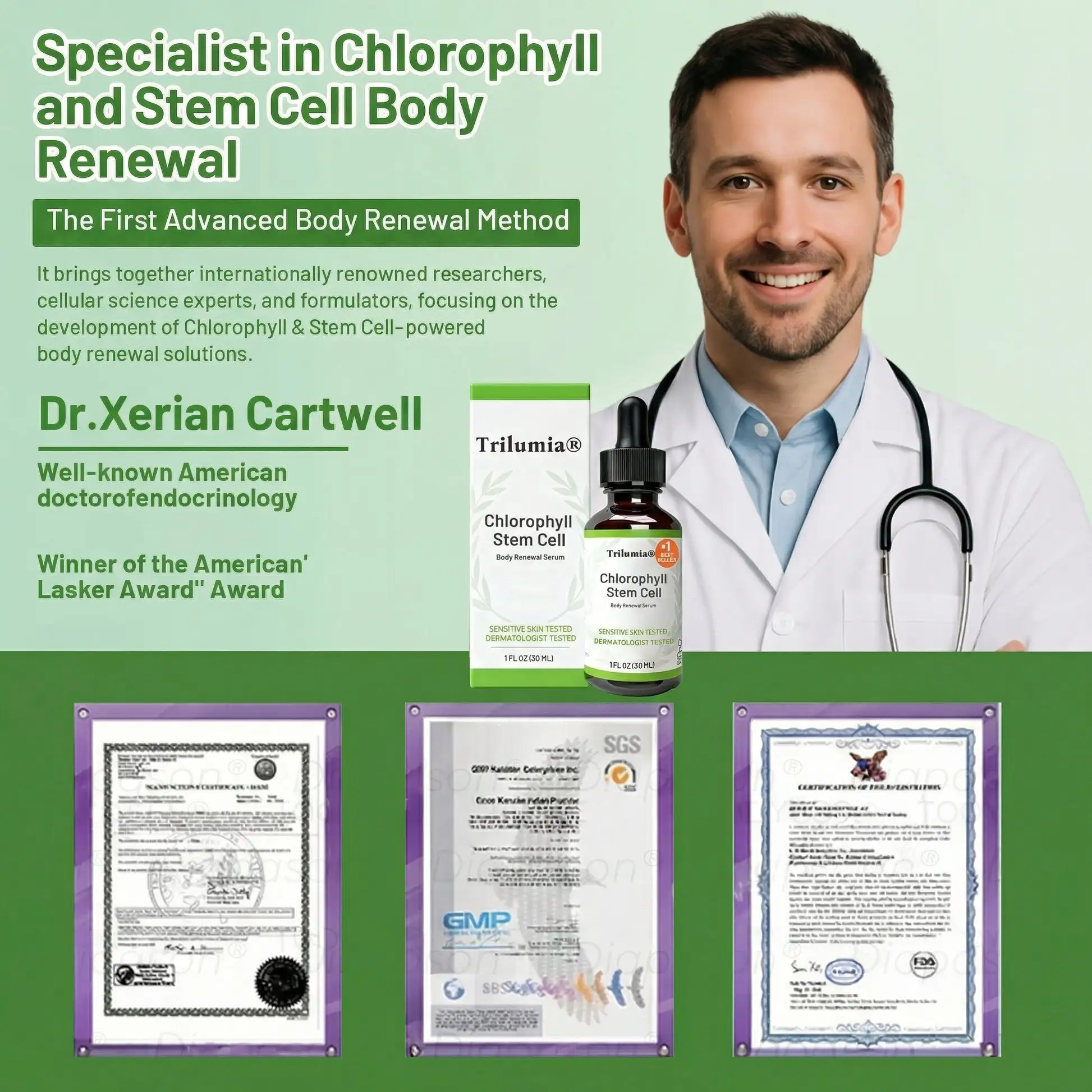 We are proud to announce that our Officially Authorised Exclusive Edition โ Trilumiaยฎ Chlorophyll & Stem Cell Body Renewal Serum is now FDA certified!