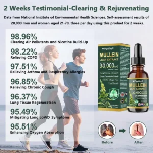 I started looking for something gentler, something I could use daily without side effects. Thatโs when I foundย ๐ซ๐พ๐๐๐พ๐ถ๐ยฎ Organic Mullein Leaf Extract Dropsย in a community group for people with lingering lung issues. I kept seeing people say it soothed that โscratchy airwayโ feeling, so I tried it. Within days, the burning in my chest eased. Within two weeks, my morning congestion was lighter, and I wasnโt waking up gasping every time the temperature dropped overnight.