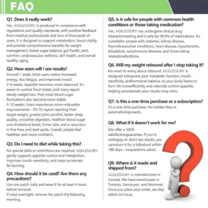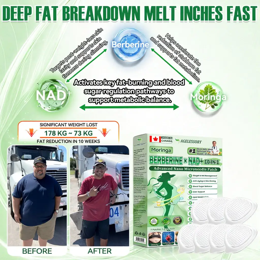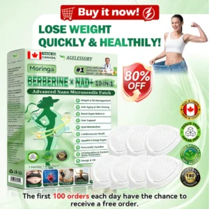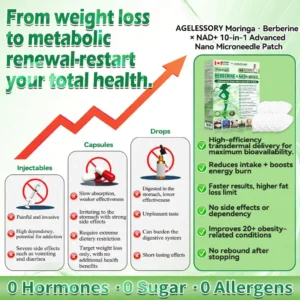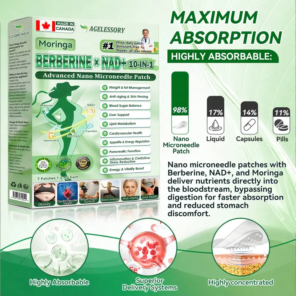 AGELESSORYยฎ๐ด๐๐๐๐๐๐ฎ ยท ๐๐ฒ๐ฟ๐ฏ๐ฒ๐ฟ๐๐ฃ๐ ร ๐๐ผ๐+ ๐๐-๐ข๐ง-๐ ๐๐ฑ๐๐ฎ๐ป๐ฐ๐๐ ๐๐๐ฃ๐ค ๐๐๐๐ง๐ค๐ฃ๐๐๐๐ฅ๐ ๐๐๐ญ๐๐ ย was developed through more than 20 years of research by a multidisciplinary team of over 30 experts. Each patch incorporates an ultra-fine microneedle architecture measuring approximately one-seventh the thickness of a human hair, designed to ensure a smooth and virtually painless application. The formulation contains highly concentrated natural bioactive compounds, up to 20-fold higher than conventional market levels, including Moringa and Berberine, which act synergistically to support healthy glycemic responses, appetite regulation, and lipid metabolism, thereby promoting gradual and sustainable weight management. Enriched with NAD+,the patch further supports skin firmness and structural resilience during body-weight fluctuations, helping maintain a lean appearance without compromising comfort or aesthetics. Additional high-efficacy components contribute to the support of immune function, digestive health, gut balance, womenโs health, daily energy levels, and fatigue reduction, collectively promoting a more youthful and resilient physiological state from within. This product meets the quality standards of the Canadian Health Discussion Organization and requires no injections. Based on scientific principles, it provides a safe and comprehensive approach to effectively control weight and promote long-term metabolic health, designed to work in harmony with the body rather than against it.