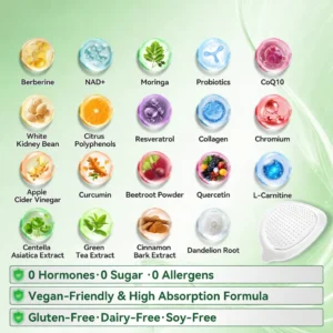 Benefits: Supports effective weight reduction and appetite regulation, stabilizes blood glucose levels, promotes cardiovascular health, reduces chronic low-grade inflammation, and helps alleviate metabolism-related fatigue.