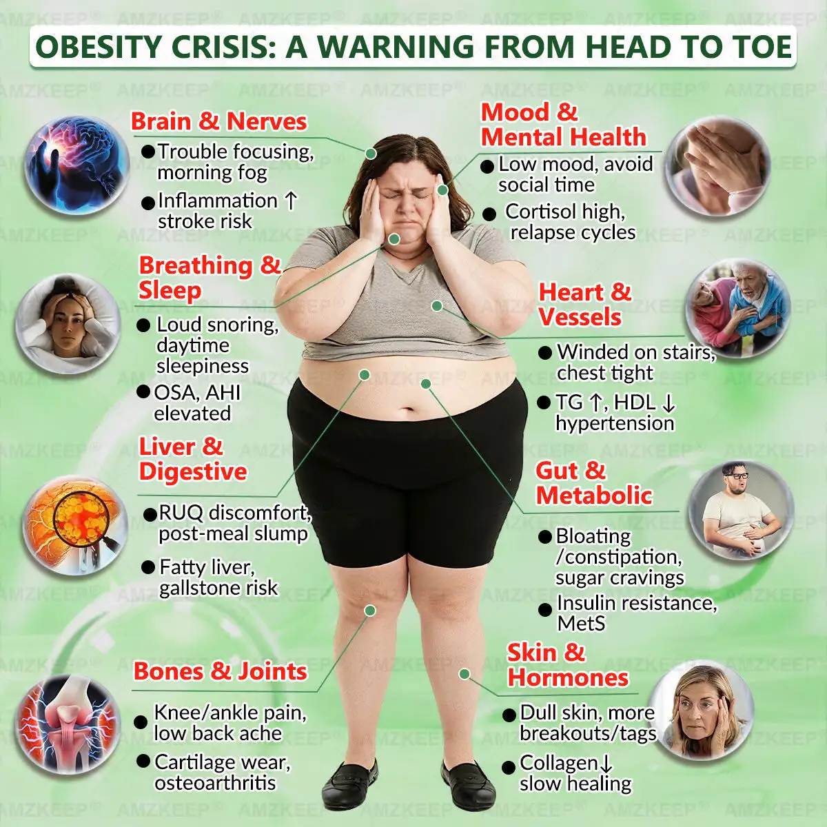 - Cancer risk:ย Increases cancer risk by 50% compared to people with healthy weight.