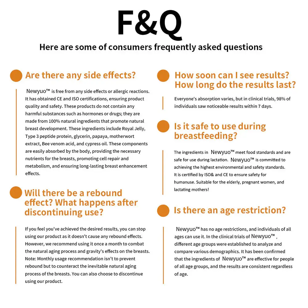 Designed specifically for breast care, Newyuoโข helps enhance breast size, improve shape, boost firmness, and restore natural beauty. Whether you’re dealing with underdeveloped breasts, sagging, lack of elasticity, or changes caused by pregnancy or menopause, Newyuoโข offers an effective solution to help you regain confidence and beauty.