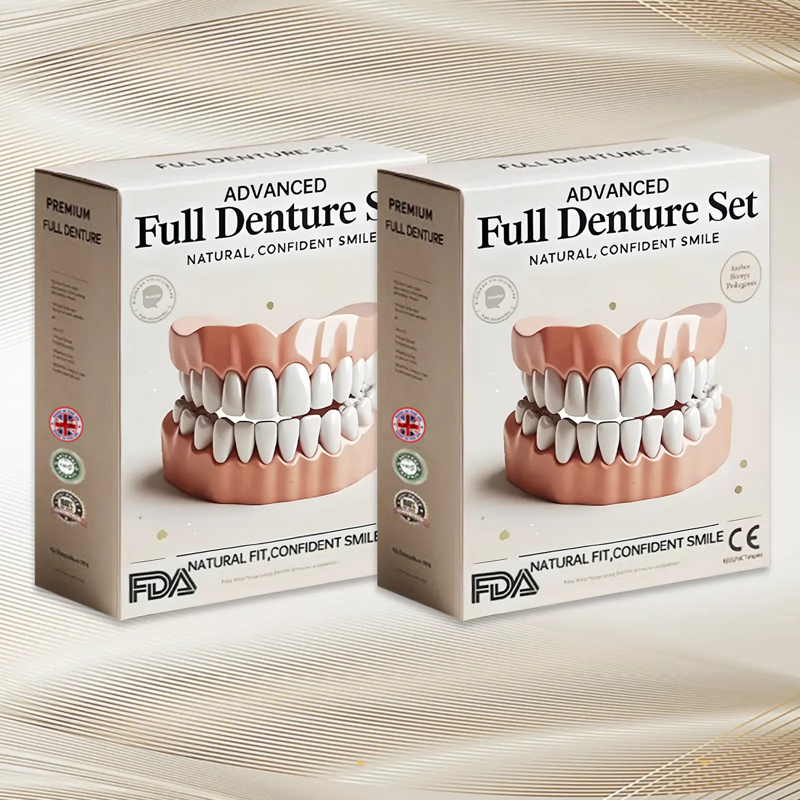 Ourย high-end custom denturesย andย alignersย are crafted with cutting-edge,ย AI-powered CAD/CAM technology, ensuring aย perfect fitย tailored to your unique oral structure. The process begins when you place your order, providing us with your specific oral information and needs. Then, ourย AI technologyย takes over, with an impressiveย 98.45% design accuracy, ensuring unmatched precision and eliminating concerns about poor fit or discomfort.Usingย patented technologyย developed by theย University of Michigan School of Dentistry, combined with premium, food-grade materials likeย high-grade polymers,ย silicone,ย polyurethane, andย natural resins, we guarantee the highestย safetyย andย quality standards. After the design, we proceed with precise molding and crafting, a process that typically takesย 1-2 days. Rigorousย crack resistanceย andย heat testsย are then conducted to ensure exceptionalย durabilityย andย reliability, giving you peace of mind with every use.Once all tests are passed, your custom dentures or aligners are carefully packaged and shipped, a process that takesย 2-3 days. From order to delivery, your product will arrive inย 3-5 days, ensuring a swift and seamless experience. Every product is meticulously crafted and thoroughly tested to provide not onlyย superior comfortย but alsoย long-lasting performance. Embrace the distinct appeal ofย premium customizationย and enjoy the confidence of smiling with pride every day.
