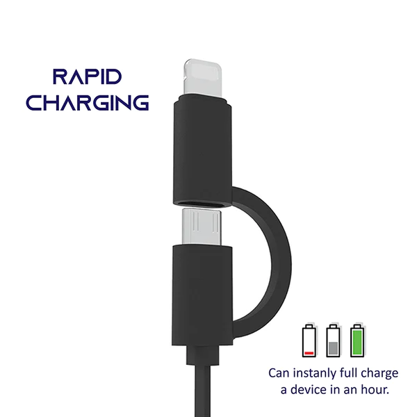 Use for data transferring and charging devices includes iPhone lightning, type-c and micro-usb plug.