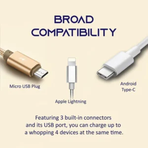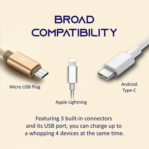 Designed with 3 charging plugs and an extra USB port for all your devices including iPhone lightning, Type-C, and Micro USB and supports charging multiple devices all at once , together with fast charging technology up to 2-3 times faster than traditional car chargers.