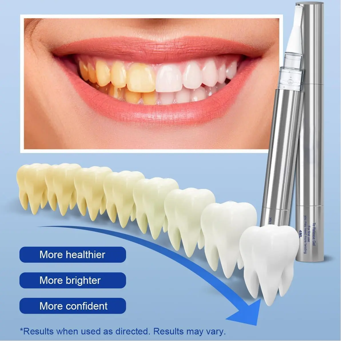 The LOVILDS teeth whitening pen uses a high-concentration whitening formula of 35% CP (hydrogen peroxide), which has been clinically proven to safely break down surface pigments on teeth and remove coffee, tea and cigarette stains.