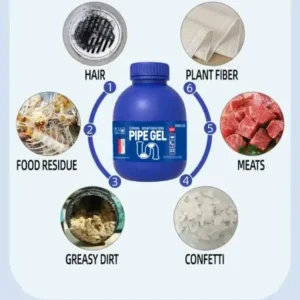 - Chlorine-Based Cleaning Agent — provides strong cleaning power that helps attack stubborn residue and odor-causing gunk inside the drain.