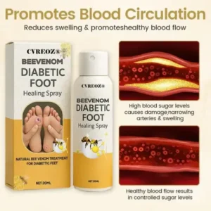 Cvreoz® Bee Venom Diabetic Foot Healing Spray is designed to help people with diabetes keep their feet healthy. It boosts blood circulation, helps heal foot ulcers and sores faster, and provides gentle care for diabetic skin. The cream hydrates deeply to prevent dryness and cracking, while also protecting sensitive skin from infections. Its smooth, quick-absorbing formula makes it easy to use every day, giving you an effective way to care for your feet.
