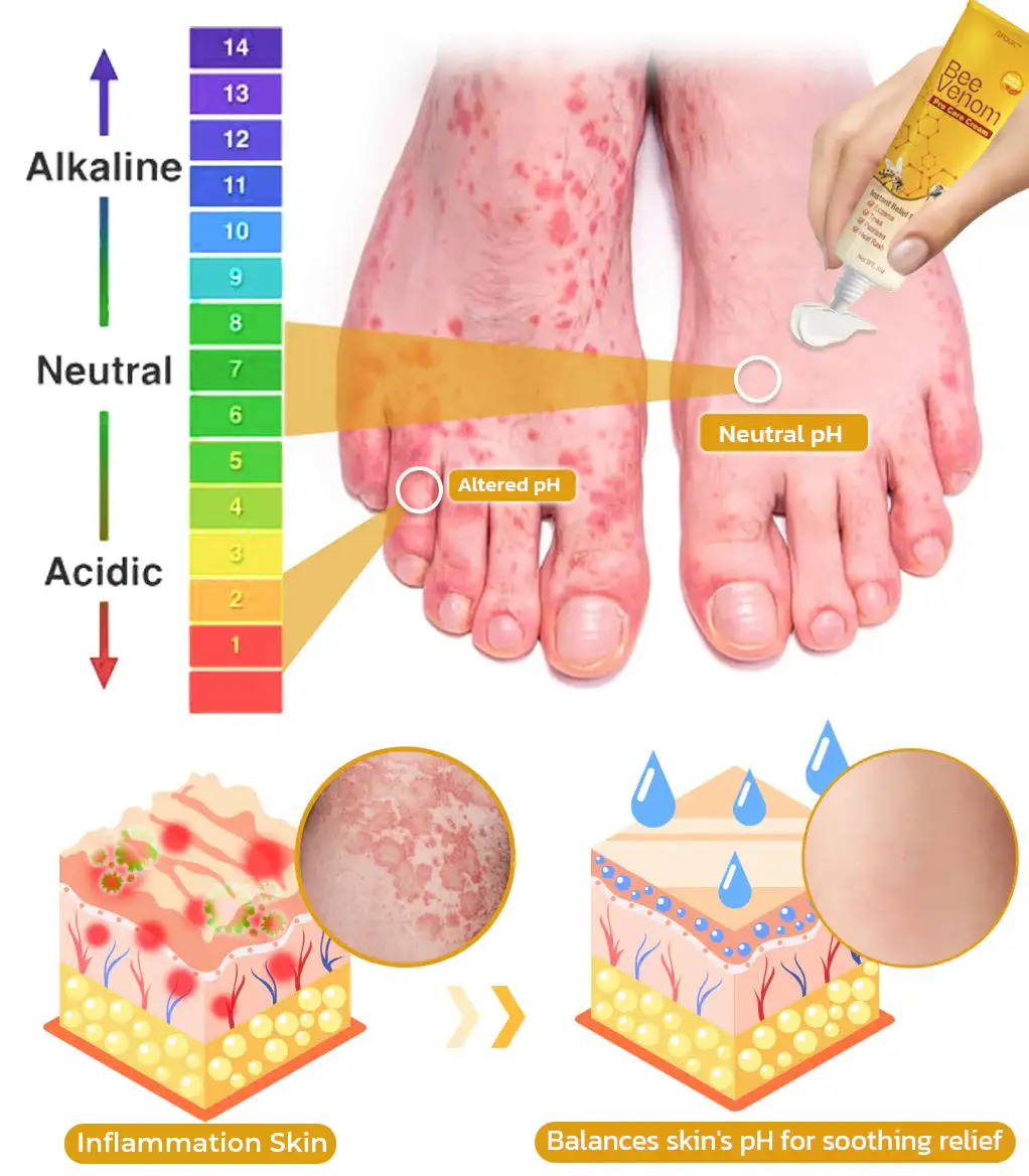 GFOUK™ Bee Venom Pro Care Cream includes Clotrimazole, an antifungal powerhouse that excels in treating various fungal skin conditions. Its sustained effects help maintain healthy skin by preventing the recurrence of fungal infections.