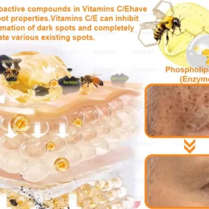 Infused with Vitamins C and E, our formula is your secret to achieving the radiant, glowing skin you’ve always desired. VLSVLS™ Bee Venom Skin Restoration Cream features powerful ingredients that penetrate deeply to reduce dark spots, pregnancy marks, sun spots, hyperpigmentation, scars, discoloration, melasma, and uneven skin tones, giving you a more even complexion. Our cream effectively targets both dark, defined spots and smaller, scattered imperfections across the face. Its quick-absorbing texture is non-sticky, leaving your skin looking translucent and revitalized.