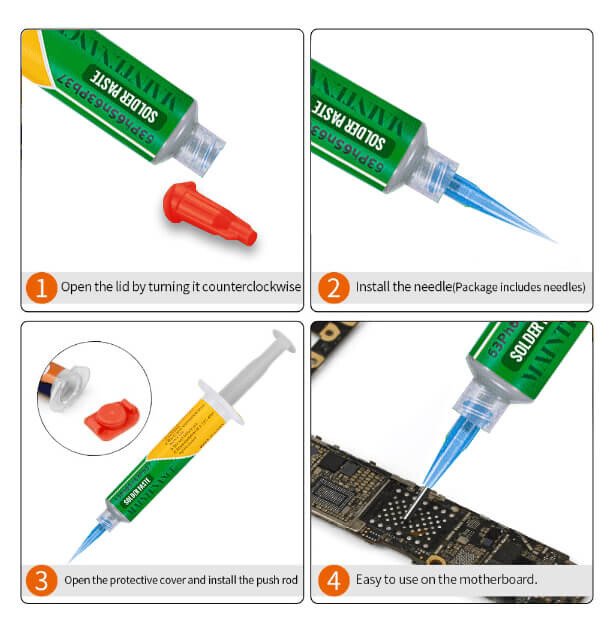 Package includes: 1 * BGA Syringe Tin Solder Paste Leaded Sn63pb37 35g + 1 * printhead + 2 * needles