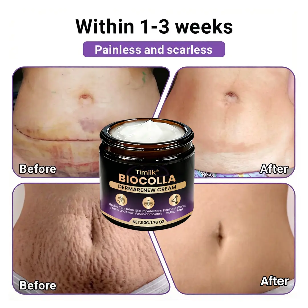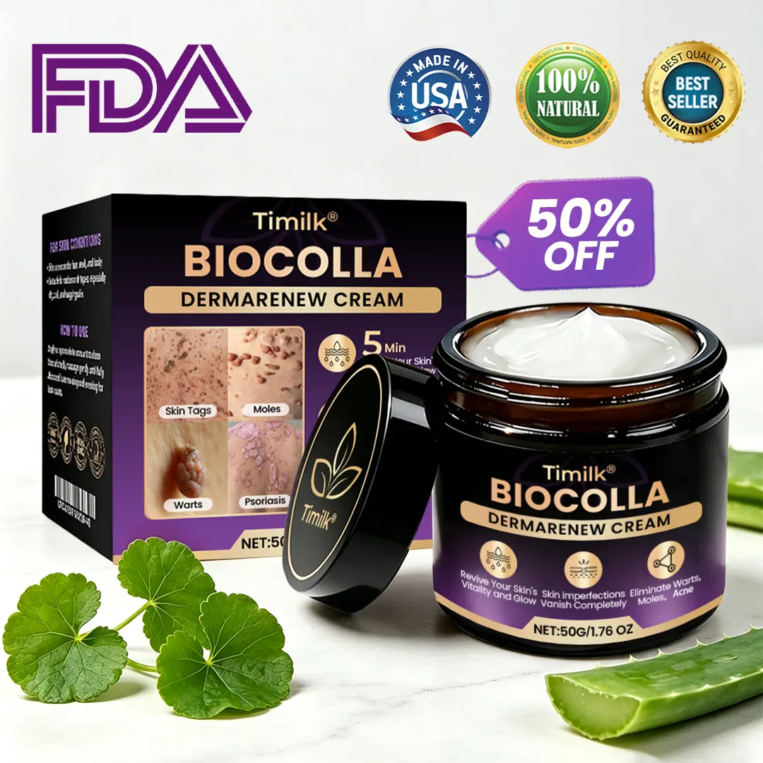 Timilk® BioColla DermaRenew Cream combines advanced research and powerful ingredients like Biotin to rejuvenate and repair your skin. This formula boosts skin elasticity, reduces fine lines, and improves texture and tone, with up to 20 times the potency of traditional skincare. Packed with natural bioactive compounds, it hydrates, enhances collagen production, and restores firmness, while addressing uneven skin tone and dryness. Manufactured to U.S. and EU quality standards, this non-invasive, daily-use cream delivers visible results safely and effectively, maintaining youthful, radiant skin.