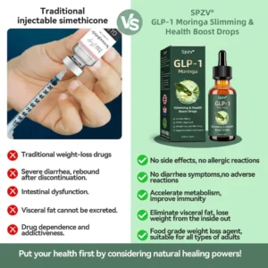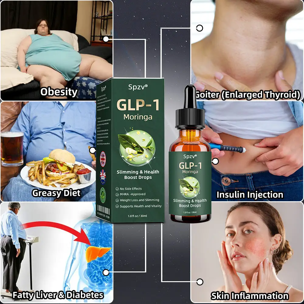 SPZV®GLP-1 Moringa Slimming & Health Boost Drops was developed by The Obesity Society. A team of experts at The Obesity Society designed this cutting-edge product after years of research and a deep understanding of the mechanisms behind weight loss and obesity management. The product is specifically formulated to help consumers effectively lose weight, boost overall health, and promote a balanced metabolism. The drops utilize GLP-1 technology and the powerful benefits of moringa to support healthy weight loss and improve general well-being, with a secondary focus on regulating blood sugar levels for a holistic approach to health.
