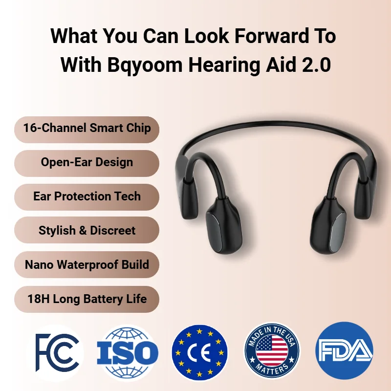 Experience the future of hearing with an open-ear design that keeps you connected to the world — naturally and comfortably. No plugs, no pressure, just crystal-clear sound and effortless conversations. Say goodbye to bulky traditional aids and hello to sleek, smart, and modern hearing support that moves with you — whether you’re chatting, jogging, or relaxing at home. Discover why Bqyoom X1 is changing how people hear — and live.