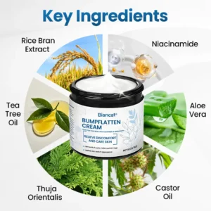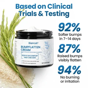 That’s why we created Biancat® BumpFlatten Cream — a gentle, daily-safe formula designed to soften raised tissue, break down deep keratin buildup, and gradually smooth small bumps without acids, burning, or irritation.
