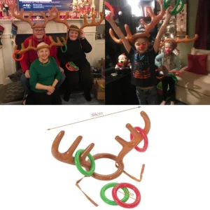 - Family Set: 3 x inflatable Reindeer Antler Hats & 12 x inflatable toss rings