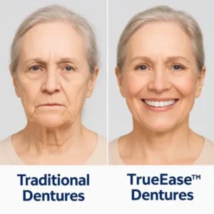 The core issue with traditional dentures is their inability to provide sufficient structural support. Unlike natural teeth, which stimulate the jawbone and help maintain its shape, traditional dentures simply rest on the gums without effectively supporting the jawbone. As a result, long-term use of traditional dentures can lead to gradual bone shrinkage, causing dentures to become loose and unstable. This often leads to facial sagging, sunken cheeks, and a weakened bite.