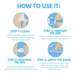 It uses a clinically-backed ligation technique, the same method used by dermatologists, now adapted for safe, painless use at home. By gently placing a tiny rubber band at the base of the tag, it cuts off the blood supply with precision. The tag dries up and falls off naturally in just a few days, no pain, no scarring, no stress.