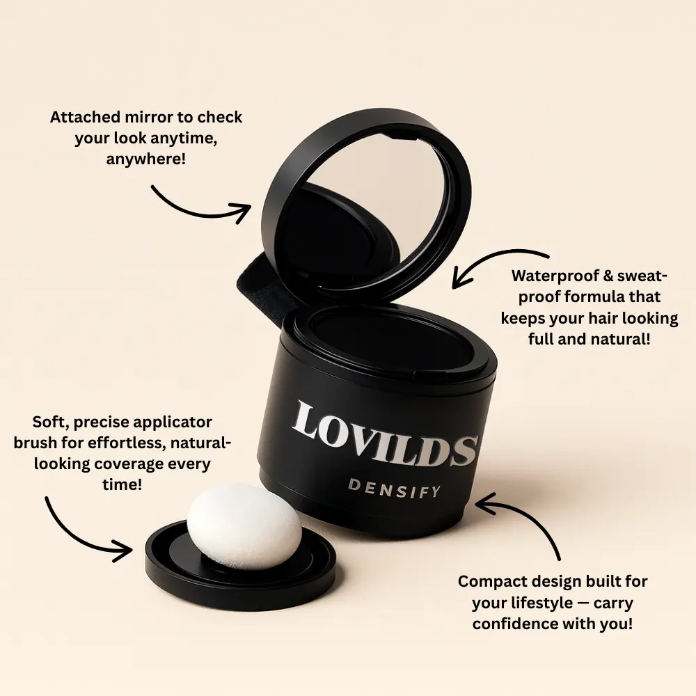 LOVILDS™ Densify is the only product that gives you instant, natural-looking, sweat-proof coverage without harsh chemicals or outrageous costs.