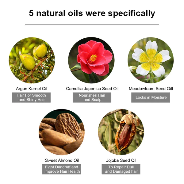 • Süßes Mandelöl: Bekämpft Schuppen und verbessert die Haargesundheit.