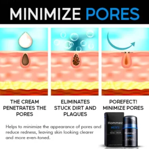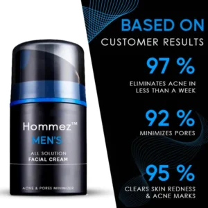 Introducing the Hommez™ Men’s All Solution Facial Cream, the ultimate solution for men’s skincare needs. This revolutionary cream is specially formulated to help minimize pores, redness, and acne, giving you clear and healthy-looking skin!