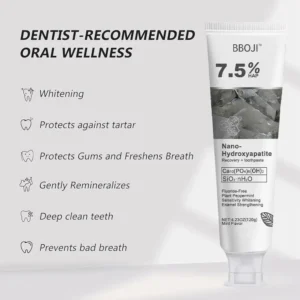 This powerhouse formula blends hydroxyapatite with natural ingredients to tackle all kinds of dental problems – from soothing toothaches and removing plaque to promoting enamel growth, preventing cavities, whitening teeth, and even healing mouth sores. It’s like a complete dental makeover in one tube!
