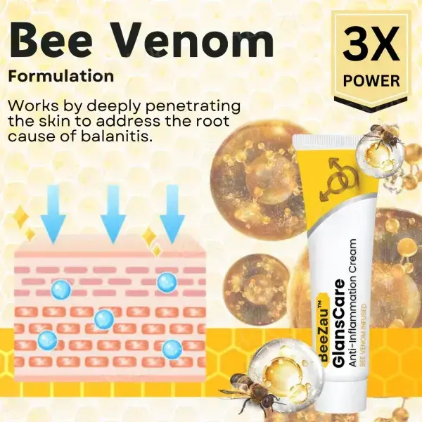 Discover the soothing power of BeeZau™ GlansCare Anti-Inflammation Cream. Specially formulated to combat irritation, inflammation, and redness associated with balanitis, our unique blend harnesses the therapeutic benefits of bee venom for fast, effective relief.