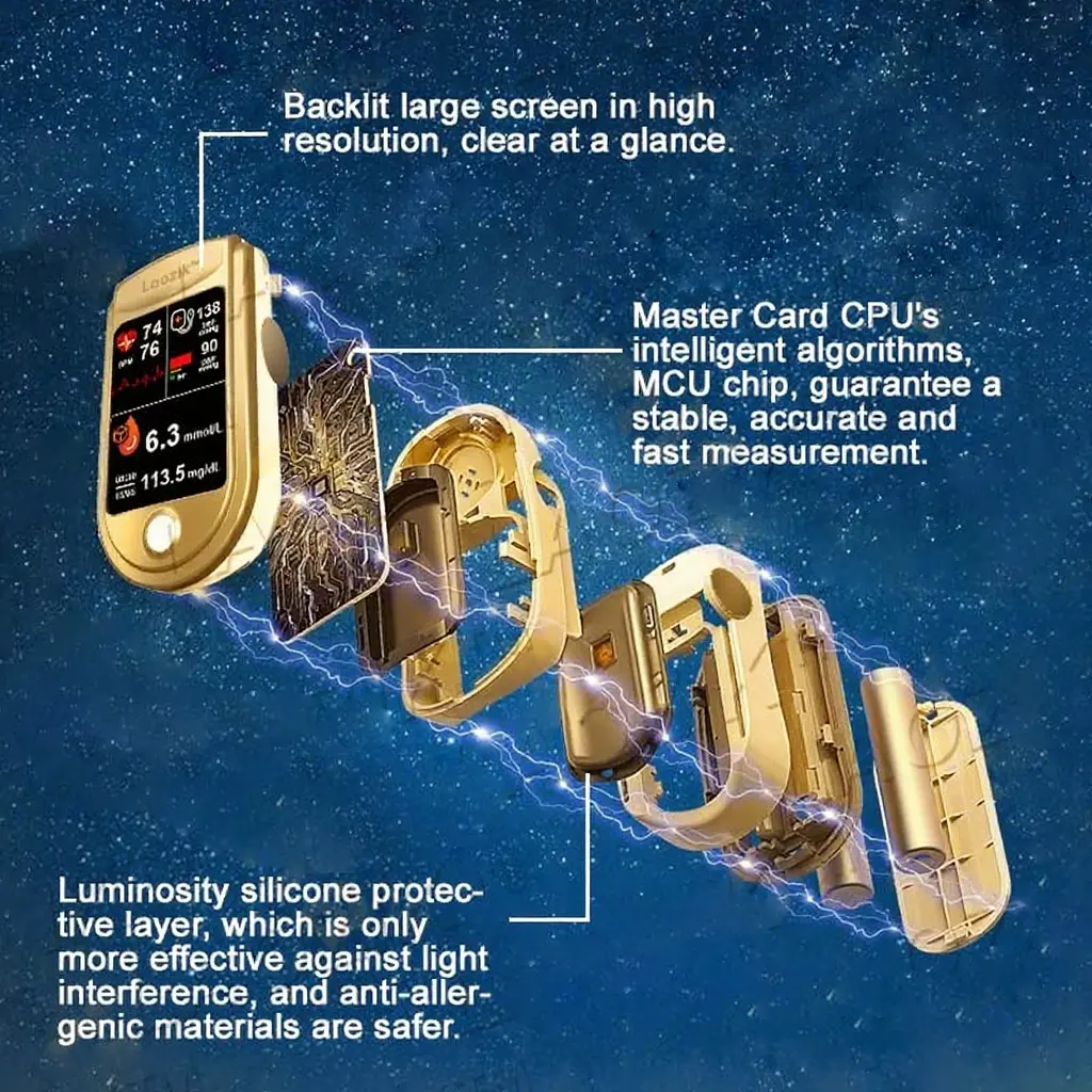 LaozikTM Professional 12in1 Glucose & Vital Signs Monitor-Painless, Fast, Precise& FDA-Backed (Made in California, USA)