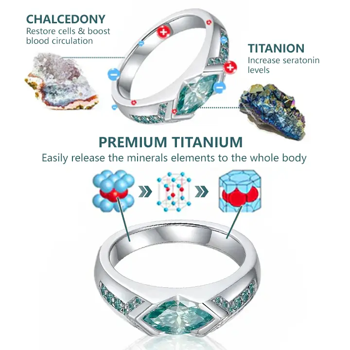 Most magnetic products either use magnets that only partially penetrate the magnetic field or use like poles that repel each other, creating a dead zone between the magnets. The Magnetology Moissanite Diamond Ring uses alternating North–South polarity to maximize magnetic field flow and discharge electromagnetic charges, helping to clear obstructions in the body and restore normal energy flow.