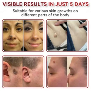 I used it consistently every day, and I soon noticed that the thick, dark growths began to dry up and shrink. After a week or so, they fell off one after another, and my skin became smooth and left no scars at all!