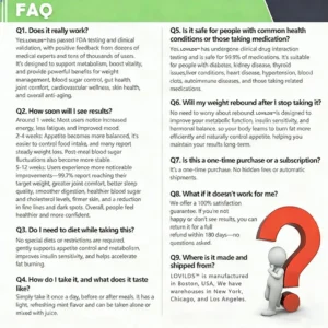 Rapid weight loss often leads to loose, sagging skin and a noticeable decline in elasticity. LOVILDS™ addresses this concern by adding Collagen Peptides and collagen-boosting factors to help restore firmness and thickness. These key ingredients support collagen and elastin production to help tighten the appearance of skin, smooth fine lines, reduce sagging, and bring back a youthful, healthy glow. This ensures you not only lose weight successfully—but also maintain a firm, youthful-looking shape without the “skinny but older” look. Slimming and skin rejuvenation can be achieved at the same time. The formula is further enhanced with powerful anti-aging and skin-firming ingredients. NAD⁺/NMN support cellular repair and help boost collagen production for anti-aging benefits; Omega-3 locks in moisture for long-lasting smoothness; Green Tea, Turmeric, and Moringa provide powerful antioxidant and soothing support; Magnesium helps support skin repair and deep hydration; while Silymarin helps detoxify, brighten, and promote a clearer complexion. This advanced synergistic blend not only helps reduce the appearance of wrinkles and supports anti-aging, but also helps improve skin laxity after weight loss—helping restore firmness, elasticity, and a more resilient look. User feedback: In as little as 4 weeks, over 82% of users reported improved hydration, smoother fine lines, firmer-feeling skin, and a visibly lifted appearance—regaining a youthful, sculpted look even after significant weight loss.