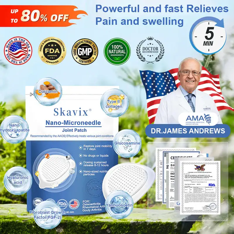“I was suffering from severe knee pain and swelling from an old injury. The discomfort made it difficult for me to walk, climb stairs, and tolerate the pain. I tried countless treatments and spent a fortune on physical therapy, but nothing provided lasting relief. Frustrated, I stumbled upon the Skavix® Nano-microneedle joint patch and decided to give it a try. Within just a few days, the swelling began to subside and the pain became more manageable. After two weeks, my knee felt stronger and I was able to walk without constant discomfort. I followed the instructions to use it twice a week, and after the fourth week, I was back to my normal activities with no pain. This patch has changed my life and given me back the mobility and freedom I thought I had lost forever!” – Noah Anderson