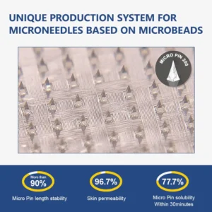 Each needle isย 0.27mmย long. justย 1/7th the thickness of a hair. and is made fromย dissolvable medication. These micro-needles are precision-engineered using cutting-edge manufacturing techniques to ensure a seamless. pain-free experience while effectively delivering the active ingredients directly into the skin.