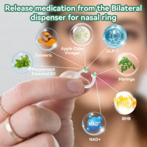 Theย Super Concentrated Nasal Ringย containย GLP-1ย andย NAD+. It works by mimicking the action of Glucagon-like Peptide-1 (GLP-1), promoting insulin secretion, inhibiting glucagon secretion, and delaying gastric emptying, which helps control blood sugar levels and aids in weight loss.ย NAD+ย (Nicotinamide Adenine Dinucleotide) supports cellular energy production, enhances metabolic functions, and may contribute to overall well-being.