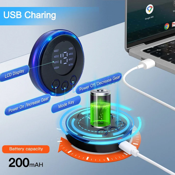 2. LCD Display: The LCD display is a screen on the device that shows important information such as massage modes, intensity levels, timer settings, and battery status. It allows the user to customize their massage experience according to their preferences.