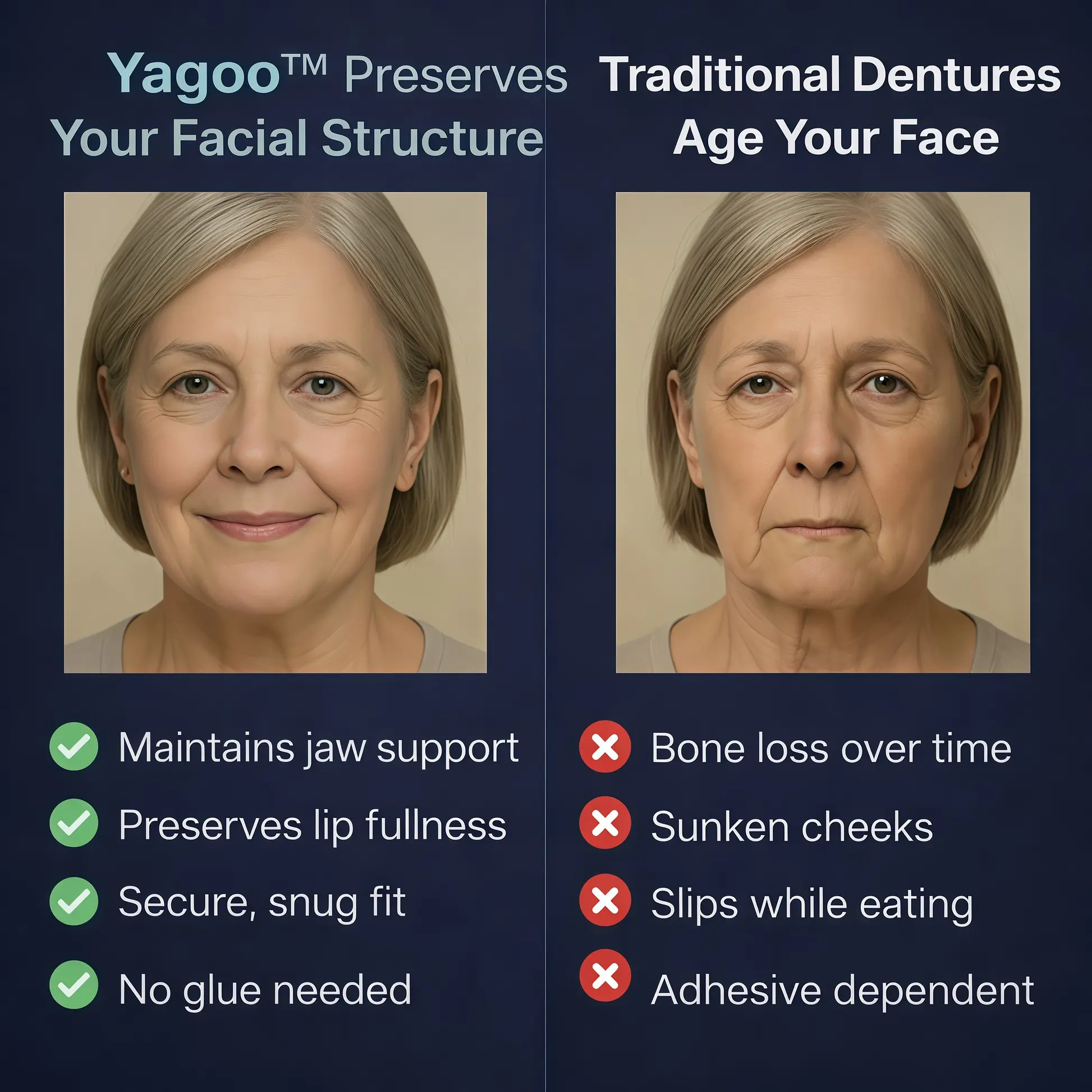 Unlike one-size-fits-most dentures or foam liners that wear out fast, Yagoo™ is engineered under expert dental supervision with proprietary pressure-adaptive technology you won’t find anywhere else.