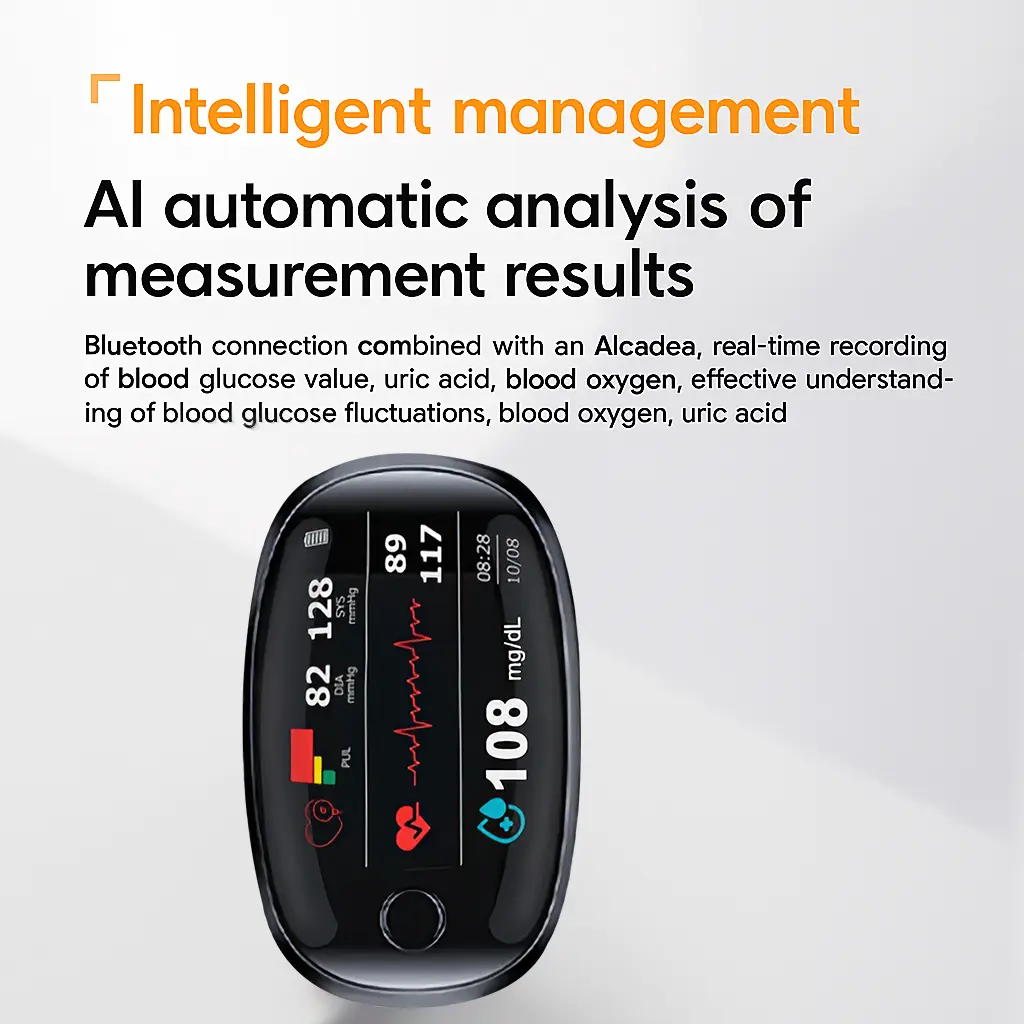 The Newyuo™ MULTI-USE Non-Invasive Laser Meter features a powerful chip with intelligent algorithms for quick, precise measurements. Its low-power MCU chip and advanced “LAMBERTBEER” algorithm capture signals rapidly, ensuring accurate results. Using cutting-edge photonic chip technology, it measures blood glucoseblood pressureblood lipids, and more. This multifunctional device provides comprehensive health tracking, enabling users to monitor their health with confidence.