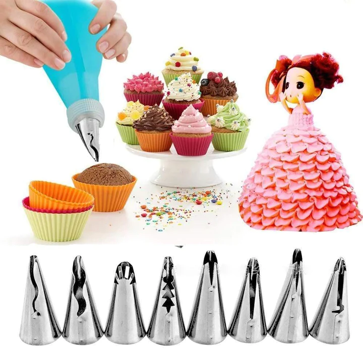 These tips are used to create swags, ruffles, ribbons, streamers, and similar designs on your cake. Making your own beautiful and unique cakes, puffs, or cupcakes is so easy with the right tools! Use these Premium Queen Nozzles Kit, you can create a beautiful princess or doll cakes for your birthday or wedding.