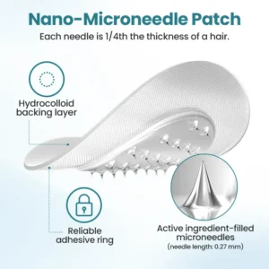 The Juxek™ next-generation nanoneedle patch leverages advanced technology. Its 0.27mm microneedles — just 1/7th the thickness of a hair — guarantee painless skin penetration. These microneedles directly deliver soluble drugs into the skin, enabling optimized absorption and a potent therapeutic effect, thus providing an efficient and comfortable treatment experience.