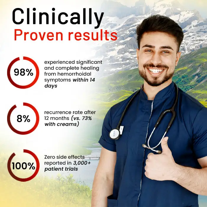Most users report: Pain relief within 24-72 hours, symptoms typically gone by day 6 (first box). But here’s the key – you MUST use a second box after symptoms disappear to ensure complete tissue regeneration. Total treatment: 2 boxes (12 days). Results: 92% remain hemorrhoid-free after 6 months.