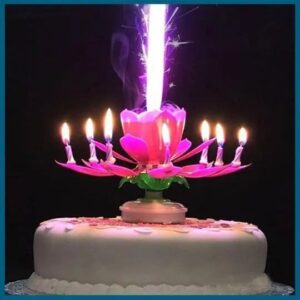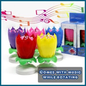 It has a BIRTHDAY MUSIC PLAYING while the CANDLES ROTATES as the flower blooms. It is made of HIGH-QUALITY PLASTIC material making it SAFE and NON-TOXIC to use. The PLASTIC is RETARDANT making it SUPER SECURE and NON-BURNING.
